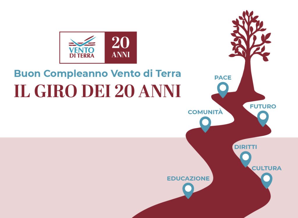 Da aprile e per tutto l’anno nasce Il Giro dei 20 Anni: un percorso di eventi itineranti che attraverserà i territori dove Vento di Terra è cresciuta, ha costruito relazioni e generato possibilità.